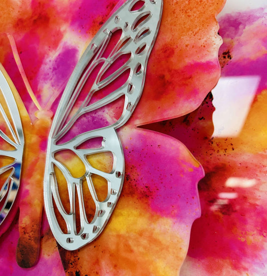 PALC-62 JULIA Silver 3D Colorful Butterfly Acrylic Mirror Prints