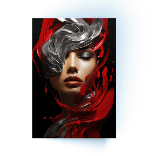 NC-122 ZENTAR Red Woman Silhouette Modern Acrylic Wall Art