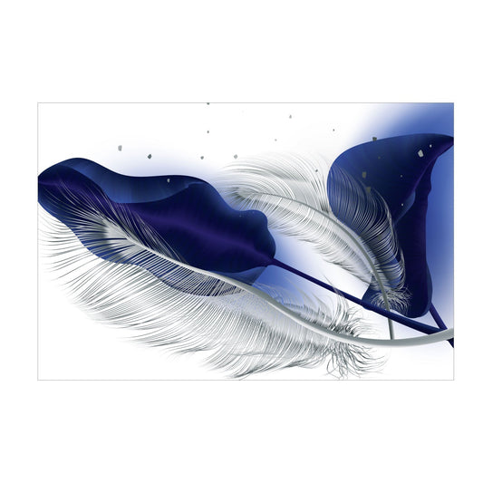 SULC-42 LEAVES SILVER, Blue/Light Blue Feather Modern Acrylic Wall Art