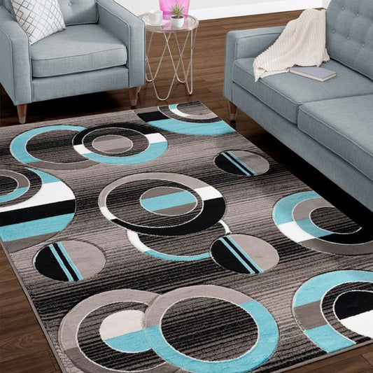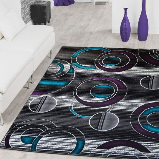 GROR24 LAWRENCE Grey Turquoise and Violet Polypropylene Area Rug