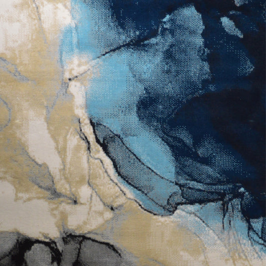 GS-7922 BLU BONITA Collection Grey Beige and Blue Waves Pattern Rug
