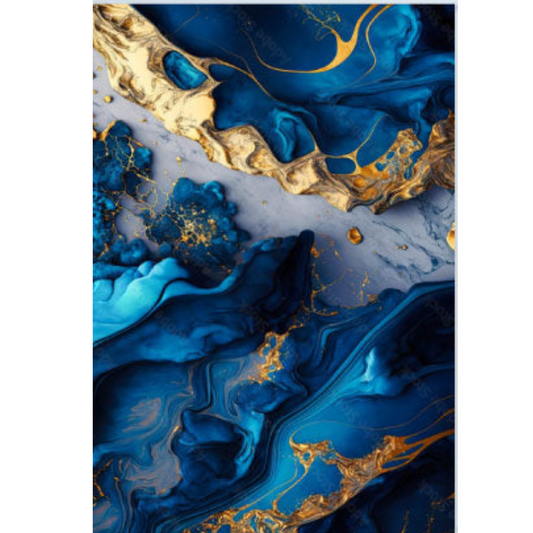 NC-86 RHEA Blue And Gold Abstract Swirls Modern Wall Art TG